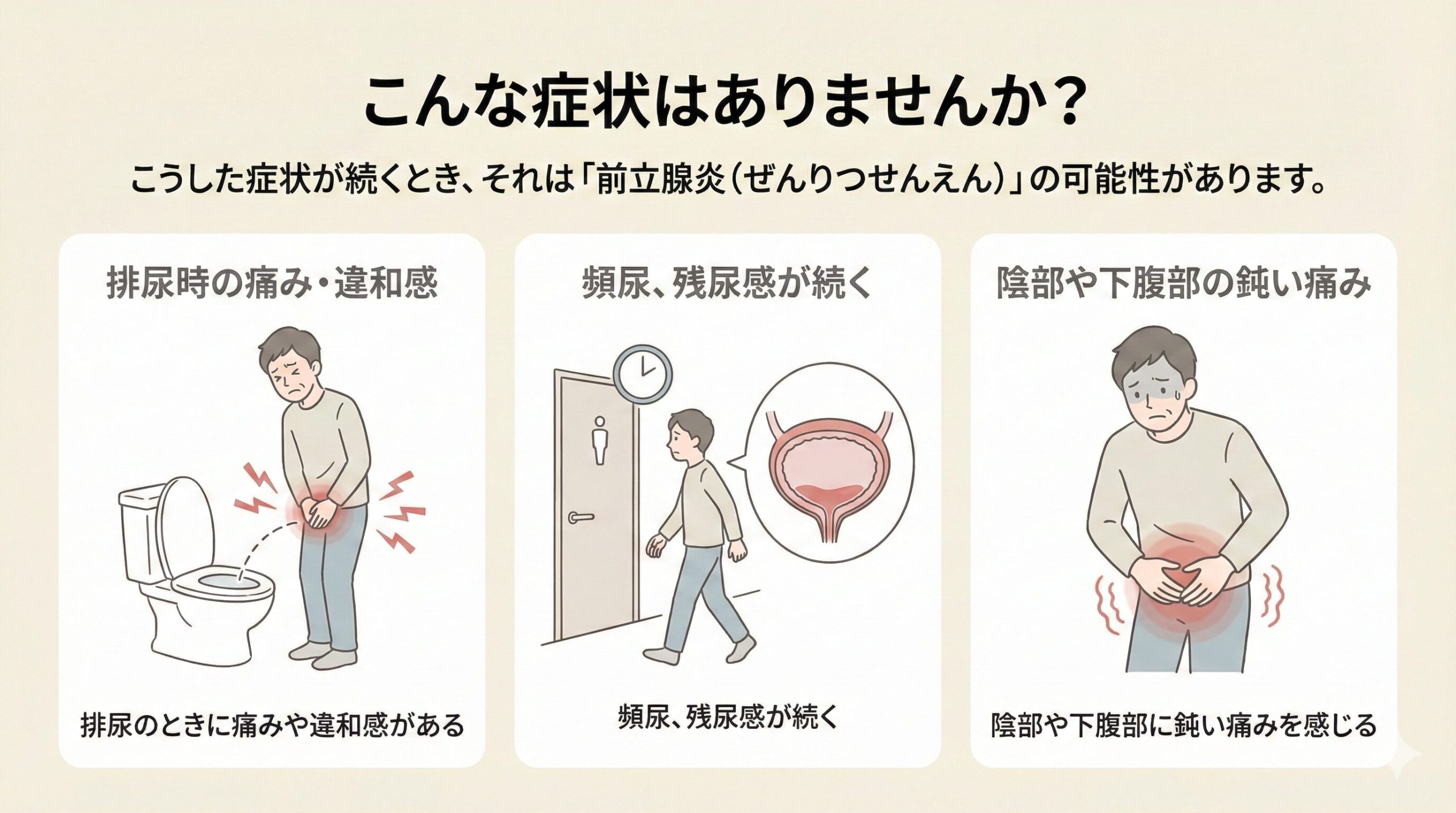 こうした症状が続くとき、それは「前立腺炎」の可能性があります。