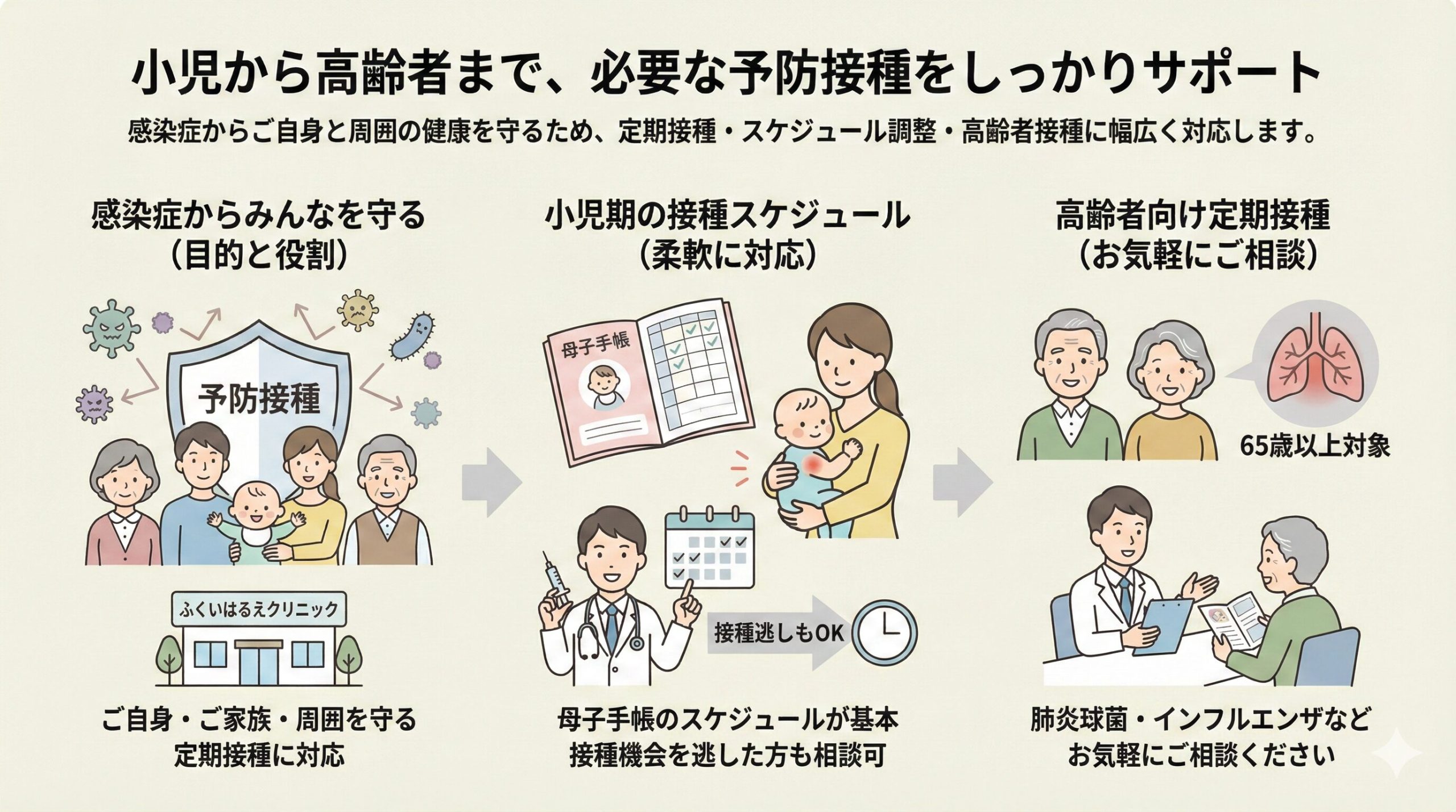 小児から高齢者まで、必要な予防接種をしっかりサポート
