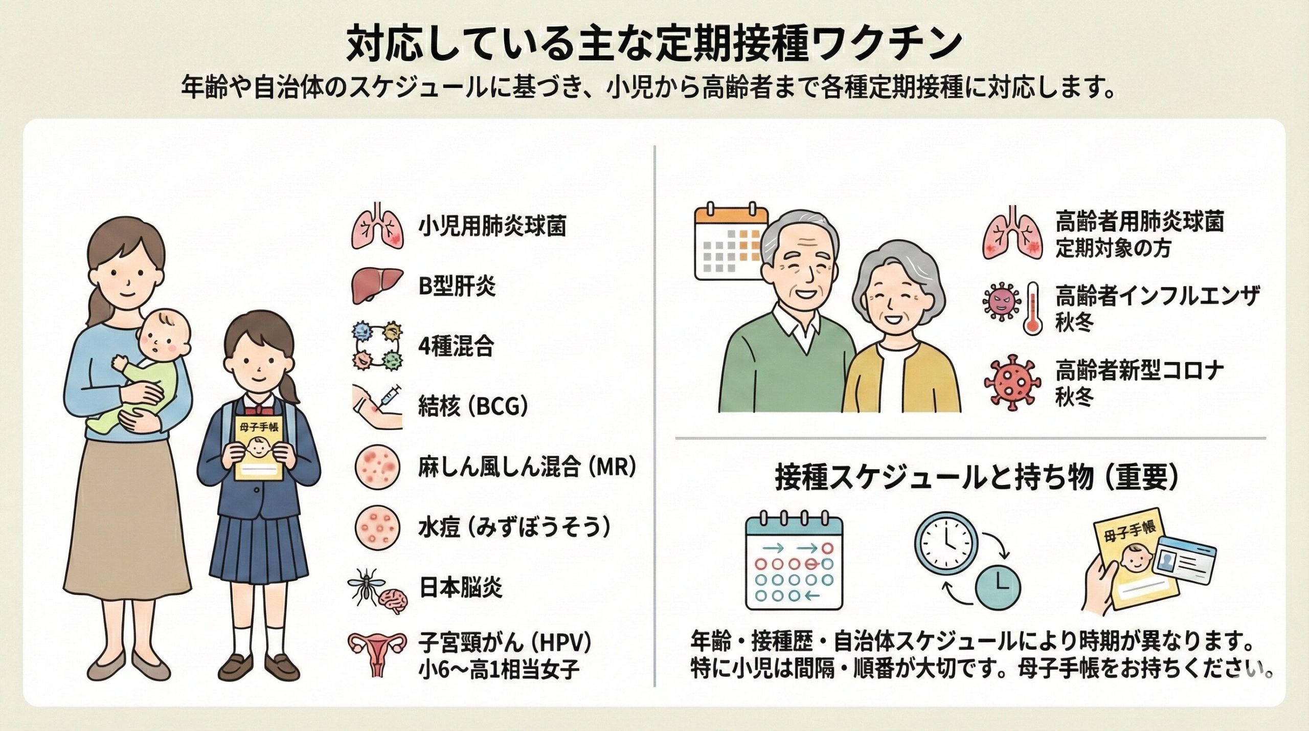 また、65歳以上を対象とした高齢者向け定期接種についてもお気軽にご相談ください。